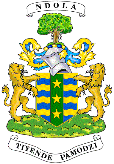 del Copperbelt, bianca con lo stemma civico al centro. Lo scudo mostra