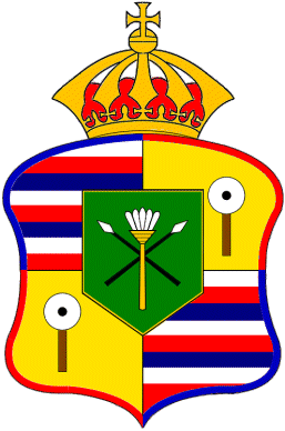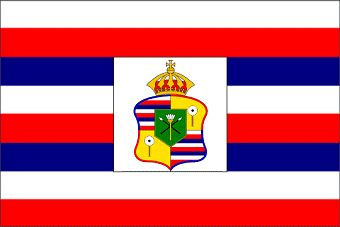 Bandiera reale introdotta in una data imprecisata della seconda metà del XIX secolo e durata fino al 1893, quando la regina Liliuokalani fu deposta da un colpo di stato. Aveva le stesse strisce della bandiera nazionale e recava uno scudo, preso dallo stemma di stato, inserito in un pannello centrale. Lo scudo, coronato, era inquartato a quarti alterni con le strisce della bandiera nazionale e, in campo d'oro, un puloulou, un'asta con una palla bianca in cima, che era posta presso la porta del palazzo reale in segno di accoglienza e protezione. Sul tutto, uno scudetto verde con due lance incrociate (alia) e il puela, una sorta di stendardo piumato triangolare che era alzato sulle imbarcazioni del re. Uno stemma simile è sulla bandiera di Honolulu.