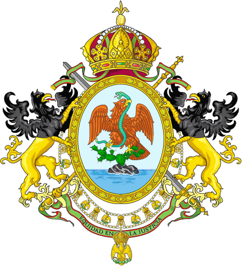 Stendardo dell'imperatore Massimiliano, adottato il 1° novembre 1865 e abolito nel maggio 1867. Proporzioni 1/2. Presso gli angoli del drappo tricolore erano poste quattro aquile messicane d'oro, mentre al centro figurava lo stemma imperiale. Quest'ultimo consisteva in uno scudo ovale con l'aquila messicana, sormontato da corona imperiale e sorretto da due grifoni per metà neri e per metà oro, tratti da antiche armi asburgiche. Lo scudo era accollato a una spada e a uno scettro in decusse, circondato dal collare dell'Ordine Imperiale dell'Aquila Messicana e accompagnato dal motto Equidad en la Justicia.