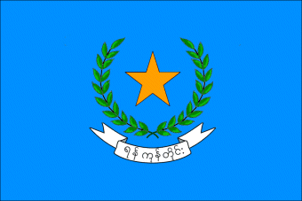 Bandiera della più piccola provincia birmana, situata nel sud del paese a est del delta dell'Irrawaddi, che è anche quella di più recente formazione (1964, separata dalla provincia di Pegu). La stella giallo-oro rappresenta probabilmente il ruolo di capitale della città di Rangoon (Yangon), anche se nel marzo 2006 è stata proclamata una nuova capitale amministrativa, Naypyidow ("Grande Città del Sole") nella provincia di Mandalay. Sul cartiglio la scritta Yangon taing, "Provincia di Rangoon".