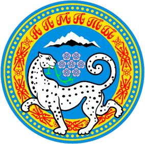 Bandiera presidenziale entrata in uso il 31 ottobre 2012. Drappo azzurro recante l'emblema nazionale definito nel 1992 e l'"ornamento decorativo nazionale" vicino all'asta in giallo-oro. Proporzioni 1/2. L'emblema rotondo, in oro e azzurro, mostra al centro la copertura di una yurta (o yurt), la tenda tradizionale dei popoli nomadi della steppa, sovrapposta a un sole radiante; ai lati due mitici cavalli alati e in basso il nome della repubblica, che dal 1° novembre 2018 è scritto in caratteri latini anziché cirillici.
