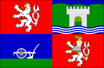 Bandiera approvata il 18 settembre 2001, ufficiale dal 21 gennaio 2002. Il leone boemo è ripetuto a quarti alterni. Nel secondo quarto figura l'aquila fiammata di San Venceslao, duca di Boemia, martire e santo veneratissimo, sepolto nella chiesa di San Vito a Praga (che è il capoluogo della regione, pur non facendone parte). Le linee ondulate del terzo quarto rappresentano la Moldava e l'Elba.