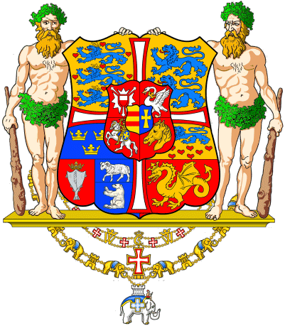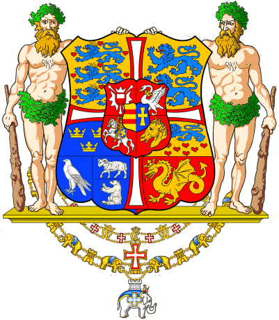 Dannebrog) del 1671, ornano lo scudo. Il 5 gennaio