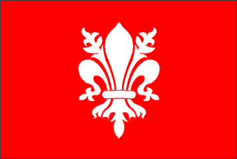 Bandiera della città di Firenze fin dal secolo XI. L'insegna rossa col giglio bianco, divenuta dopo il 1215 simbolo dei ghibellini al potere, fu rigettata dai guelfi (tornati nel 1250), i quali, pur mantenendovi il giglio, ne invertirono i colori nel 1251. Fu anche la bandiera dello stato fiorentino in guerra e come tale è ricorrente nelle cronache miniate del Sercambi e del Villani. Fu inoltre insegna marittima da circa il 1420 (quando si costituì una piccola flotta) fino a circa il 1525. Il giglio (precisamente "giaggiolo", Iris florentina), ha quasi certamente la medesima incerta origine del nome stesso di Firenze (Florentia); forse deriva dal "luogo fiorito" dove sorse la città. Comunque sia, il giglio non ha mai cessato di rappresentare Firenze e ancor oggi è la bandiera del comune.