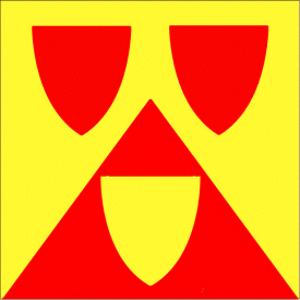 - mantiene il motivo della croce rossa in campo giallo, ma rielaborato