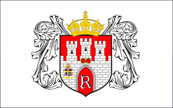 Nel 2002 è stata adottata anche una bandiera istituzionale "da cerimonia", da alzare in occasioni ben definite. Azzurra con croce di Sant'Andrea bianca e stemma della città al centro. Quest'ultimo risale al XVI secolo, ma nel corso del tempo è stato più volte modificato nel disegno e negli smalti; analogamente alle armi di altre città dell'Europa nord-orientale, raffigura il castello della porta cittadina. Nell'apertura è posta l'aquila polacca.