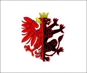 Bandiera della regione della Polonia centro-occidentale corrispondente a grandi linee all'antico ducato di Poznan, cuore e nucleo originario dello stato polacco, adottata il 31 gennaio 2000. Drappo trapezoidale in proporzioni 5/11; il pannello rosso all'asta è un quadrato, per cui il trapezio bianco ha il lato superiore pari a 6/11 della lunghezza della bandiera; il lato inferiore è 3/11. L'aquila d'argento in campo rosso, con becco, zampe, rinforzi alari e anello caudale d'oro, è una rielaborazione moderna delle armi e dei sigilli di Premislao (Przemysł) II (1257-1296), duca di Poznan e re di Polonia.