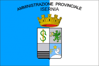 alla provincia di Campobasso.. Capoluogo: Isernia Altre città: Venafro Sigla: IS Bandiera: divisa verticalmente in azzurro e bianco con lo stemma della provincia al centro sormontato dalla scritta "Amministrazione Provinciale Isernia" in nero. Gonfalone: diviso orizzontalmente bianco su azzurro. |
